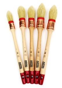 Lot de 5 brosses à rechampir en acier inoxydable spéciale peinture glycéro pour chants et angles.Composé de deux brosses rechampir N°4 et 6 et une brosse N°2.